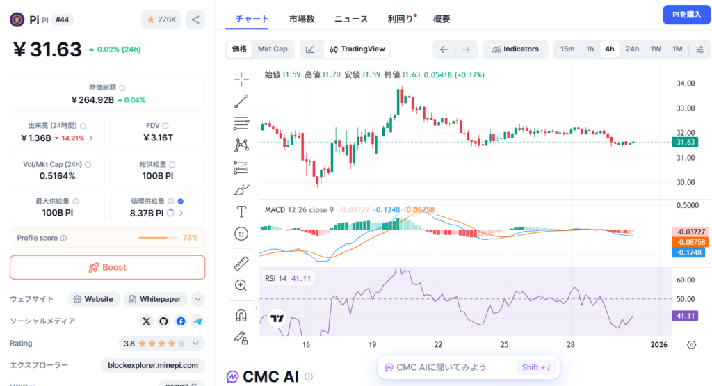 出典: CoinMarketCap 2025年12月(PI)